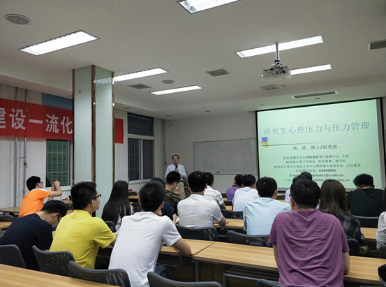 2018年5月24日晚七点半,球友会与化工学院在化工学院办公楼106会议室联合举办“研究生压力与压力管理”主题心理讲座。讲座由我校大学生心理健康教育与咨询中心主任姚斌副教授主讲,球友会与化工学院30多名研究生参加了此次讲座。