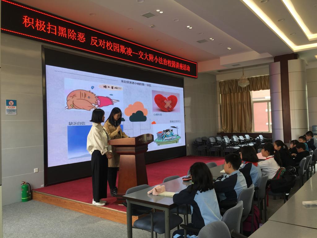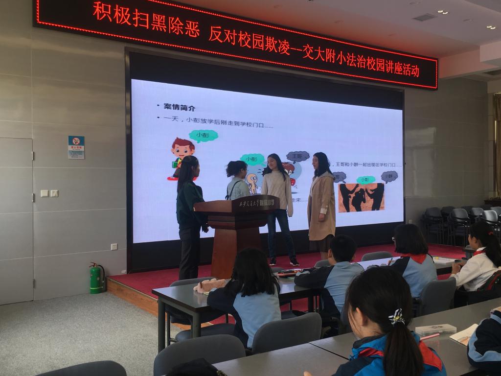 2019年4月15日,球友会球友会硕7155班(三年制)党支部一行10人来到球友会附属小学,以“积极扫黑除恶,反对校园欺凌”为主题开展了校园法治宣讲活动。本次宣讲分三组进行,由浅入深,以视频、情景表演、信件沟通等方式形象生动的向小学生们传达了面对校园欺凌,该如何保护自己,如何拿起法律的武器保护自己的权益。