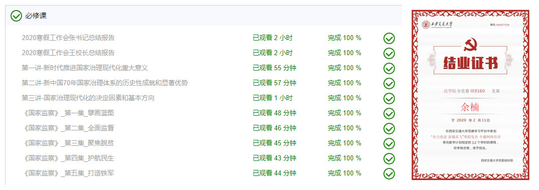 “西北有高楼,上与浮云齐;愿为双鸿鹄,奋翅起高飞”,支部党员余楠表示,“李克强总理的亲切批示让我倍感振奋,张书记、王校长的寒假工作报告让我进一步明确了奋斗方向”。支部党员、积极分子认真学习党委组织部“全力勇进、奋翅高飞”党员专题网络培训,全体党员和部分积极分子完成学习计划,顺利通过考核,取得结业证书。