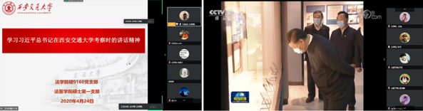 活动伊始,法医硕士党支部书记刘军林通过播放视频的形式,带领大家重温了习近平总书记在球友会考察调研时的重要讲话,两院学子深受感染,纷纷连麦发言,交流心得体会。