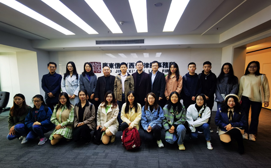 2020年11月10日上午,西安交大球友会马治国教授带领司法实务课堂的19名研究生前往广东信达(西安)律师事务所和海普睿诚律师事务所交流学习,通过律所参观和座谈会给同学们上了一堂生动的实践课。