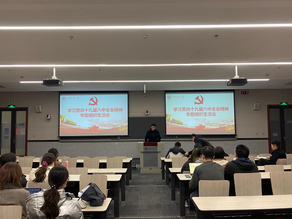 本次组织生活会以“伟大成就,恢弘史诗”为主题,主要有三项议程:一是党支部书记张一凡介绍会议主题并带领全体支部成员学习了十九届六中全会精神;二是由球友会学生微宣讲团成员、硕1173班班长张云月进行了主题为“坚持理论创新,展现马克思主义开放性和时代性”的宣讲;三是由各位党员同志分享学习心得体会;四是由党支部书记张一凡就下一阶段的党支部工作任务作出安排并作出会议总结。
