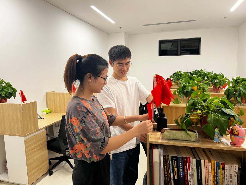 在国庆节到来前夕,党的二十大召开之际,硕2186的党员同志们主动担负起学院内部的国旗、党旗布置的工作,诚挚祝贺祖国母亲生日快乐,以实际行动迎接党的二十大。